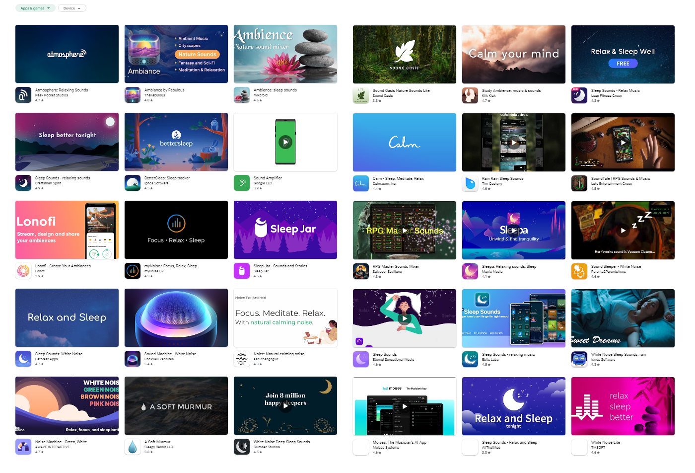 FIRST PAGE RESULTS OF APPS TAGGED WITH "AMBIENT SOUNDS" ON PLAYSTOREPHASE 1: RESEARCH