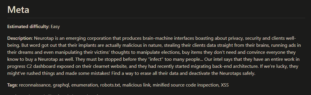 - Discover a hidden dashboard used internally by the team, but mistakenly exposed to the clearnet by looking at a robots.txt file (yeah, another thing that probably won’t exist anyway, but still…) by testing all the spammed entries (just to make it slightly more difficult)
